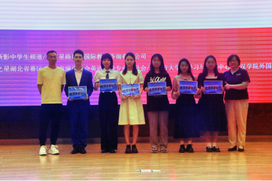 在比赛的总结环节,公共外语部主任蔡喆对比赛进行了精彩点评,并为选手们送上了美好祝愿。活动的高潮部分——颁奖仪式上,湖北省演讲协会英语演讲专业委员会主任周红兵、副主任陈志红为获奖选手颁发了晋级证书,并与获奖选手合影留念。选手们不仅获得了荣誉证书和奖品,更赢得了全场的掌声和尊敬。